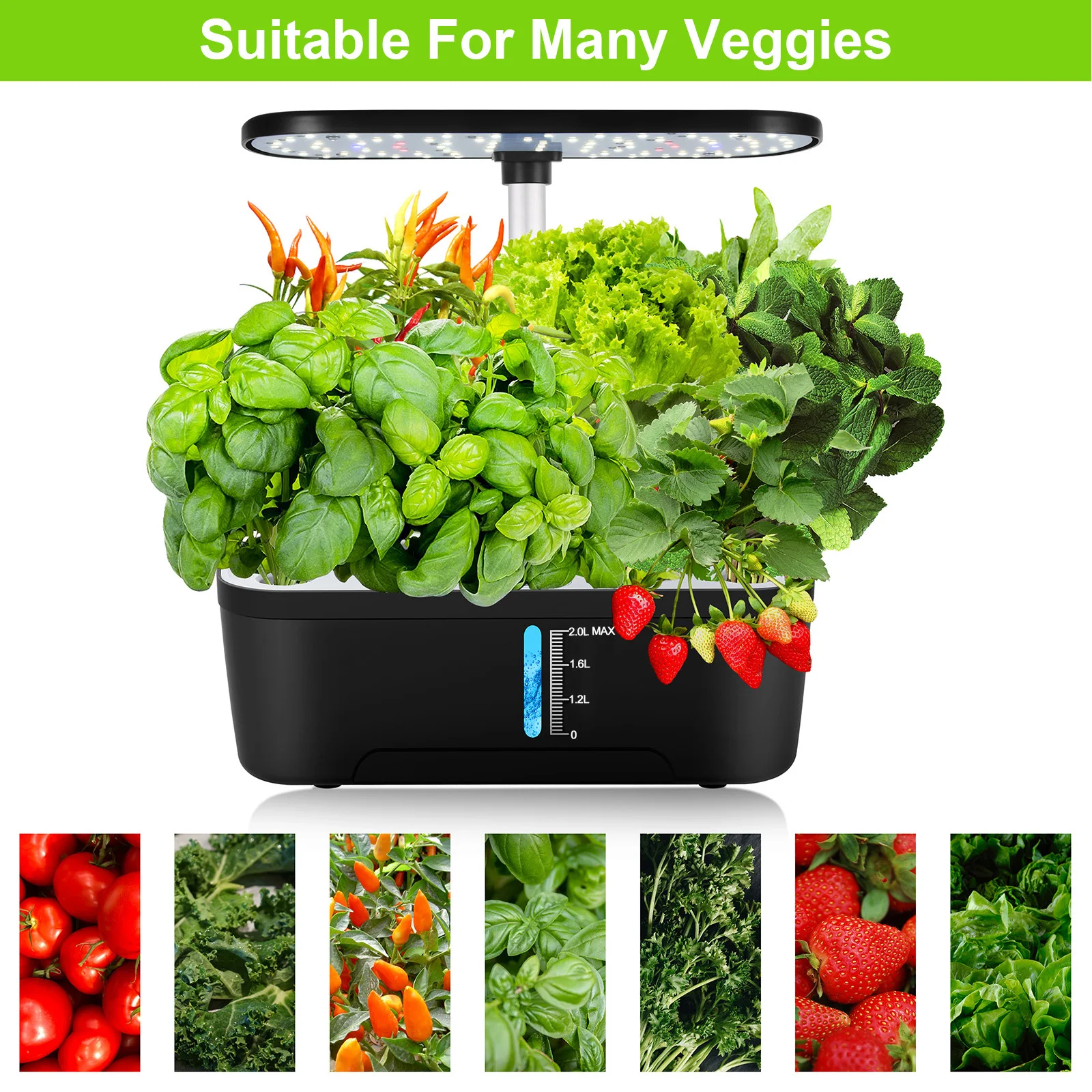 【Scientific Growth Conditions】This hydroponic growing system is equipped with adjustable height lamp posts, 12 Pods up to 41.5cm/16.5 inches, 8 Pods up to 38cm/15 inches,providing more than 20% of the lighting area, allowing plants in different growth stages to thrive. With a spacious 4 liter water tank, your plants will have plenty of room to spread their roots ,This indoor garden kit is designed to accommodate plants of all sizes and growth habits, ensuring they receive the best possible care.