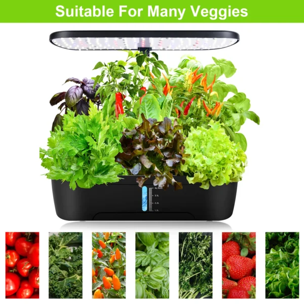 8/12 Pods Hydroponics Growing System Herb Garden Kit Indoor Adjustable Height Automatic Timer 20W LED Grow Lights 4L Water Tank
