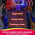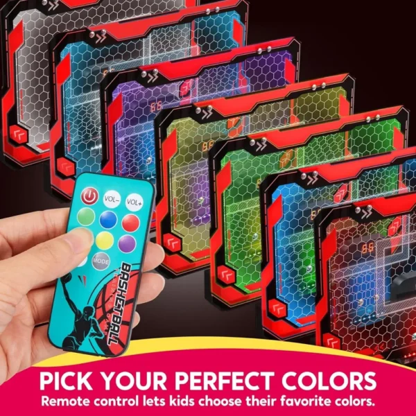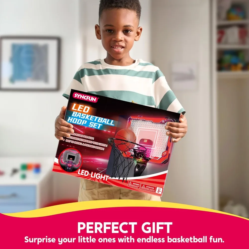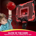【All-in-One Excitement】: This set includes a glowing LED basketball board, remote control for light adjustments, 4 basketballs, a handy air pump, and a convenient ball rack, ensuring non-stop fun and games.