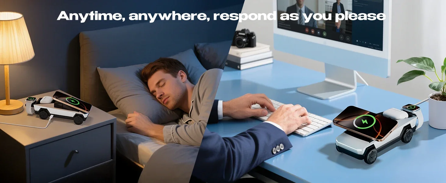 5.Charge with Confidence:Our wireless charger is certified safe with multi-protection (over-current/voltage/temperature/short-circuit/foreign object detection), cooling vents to prevent overheating, and a non-slip silicone base for stability.